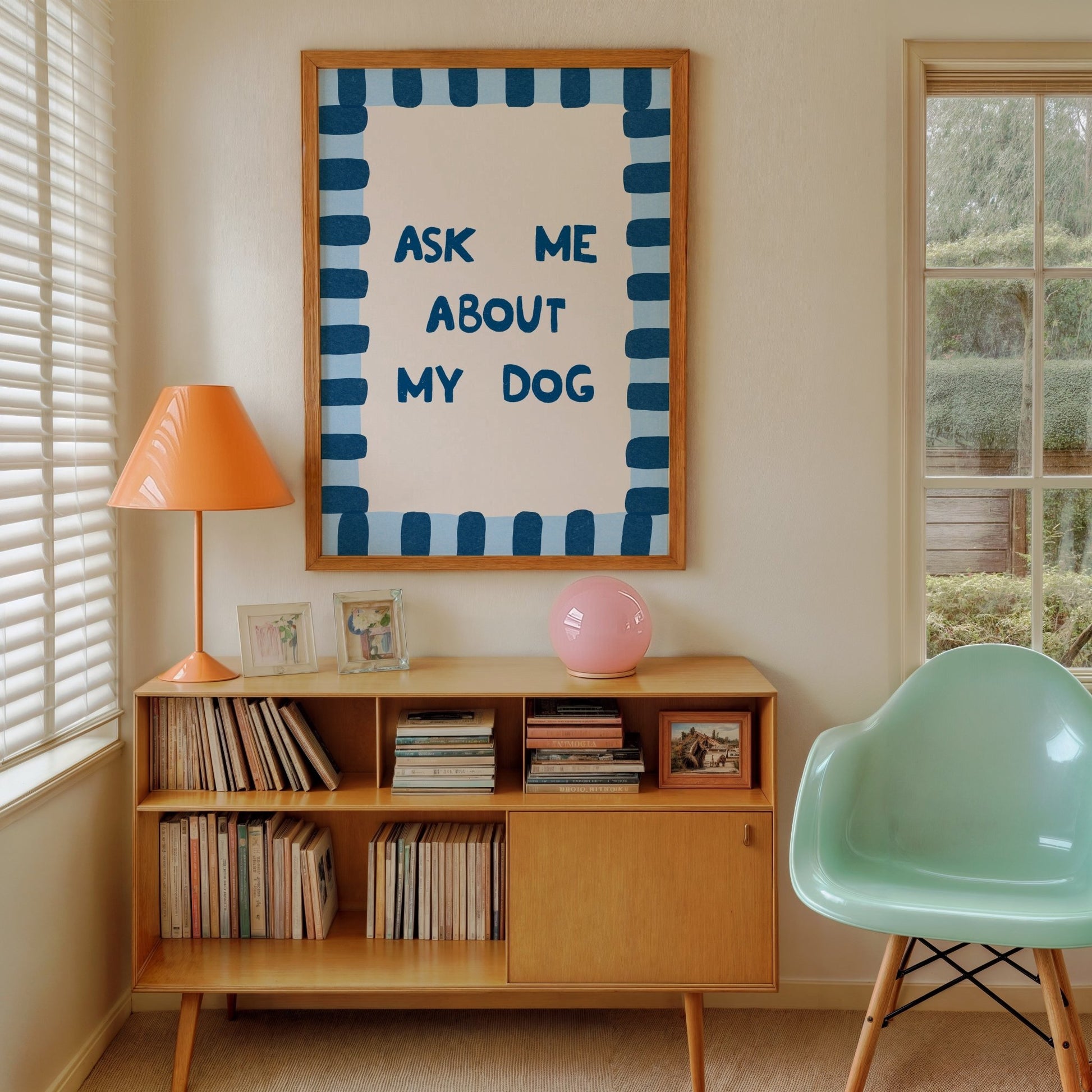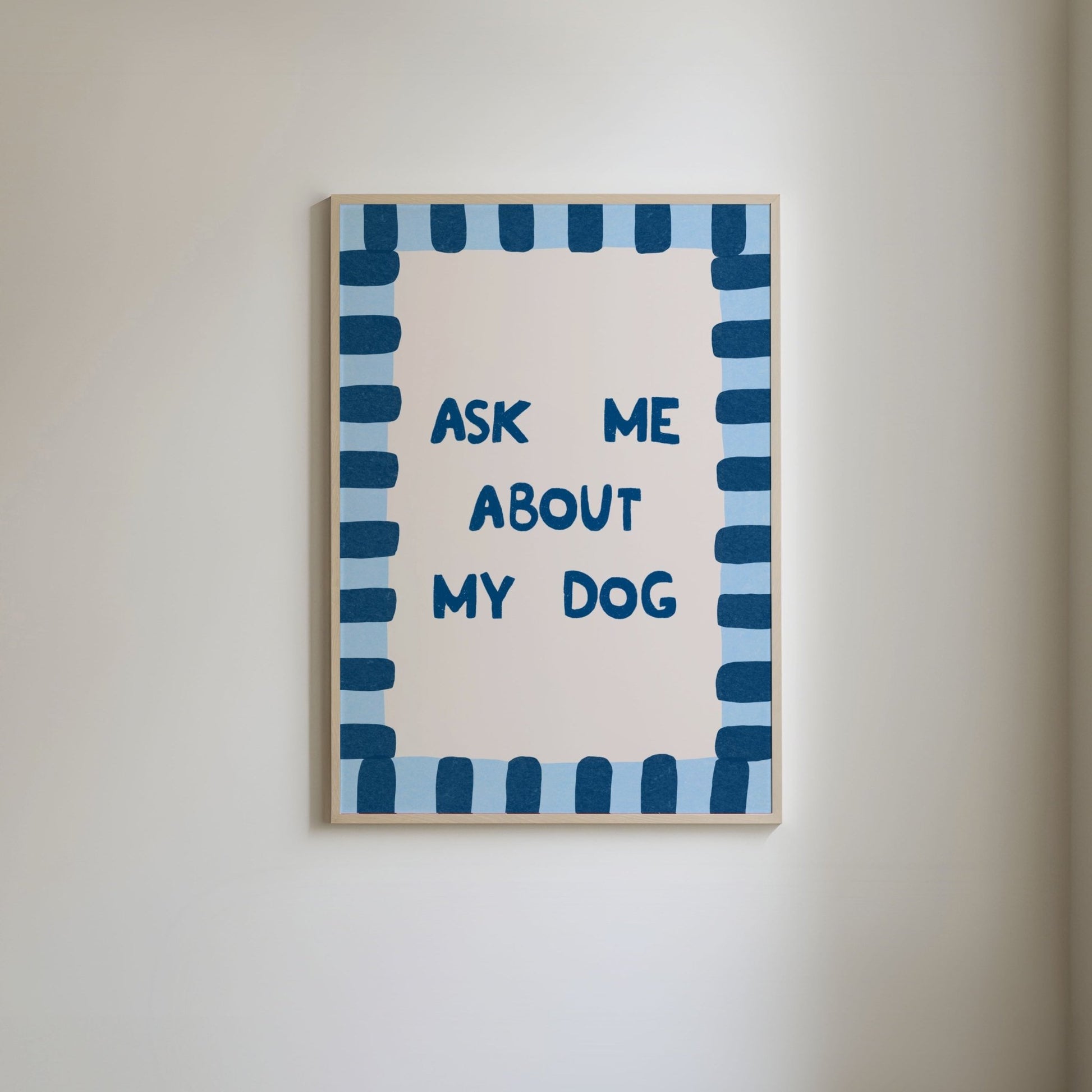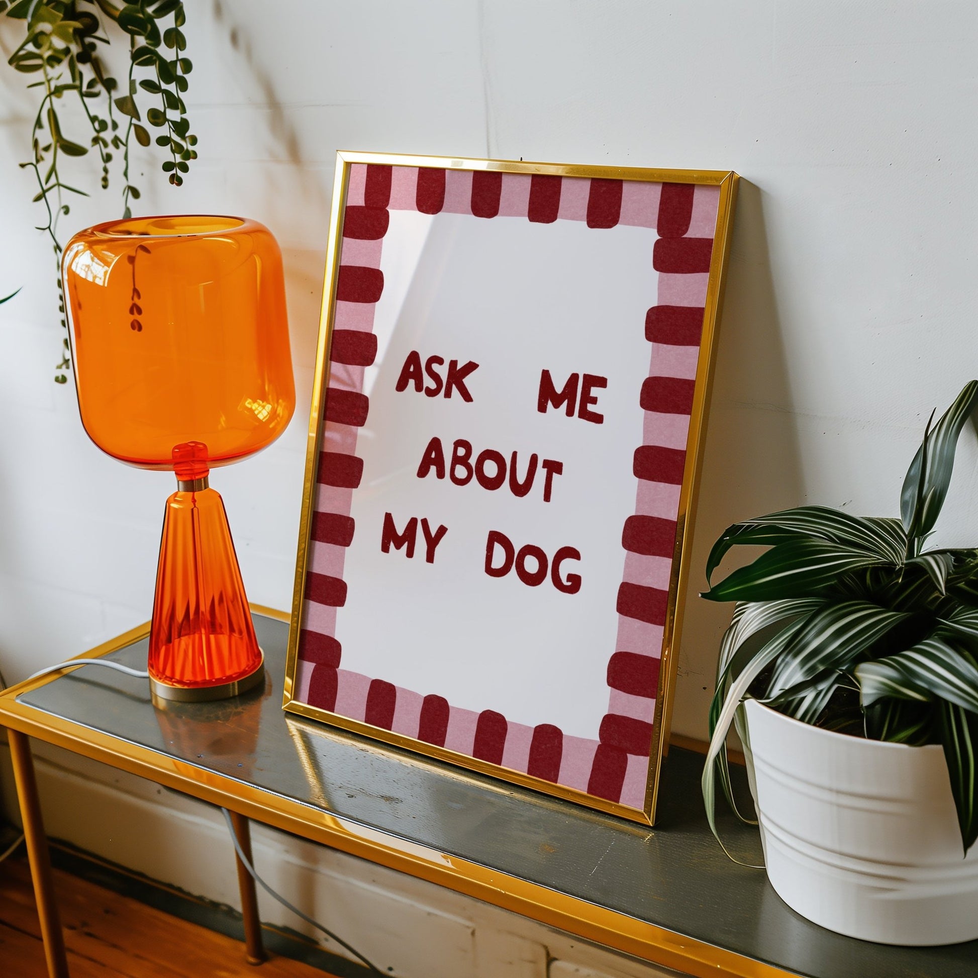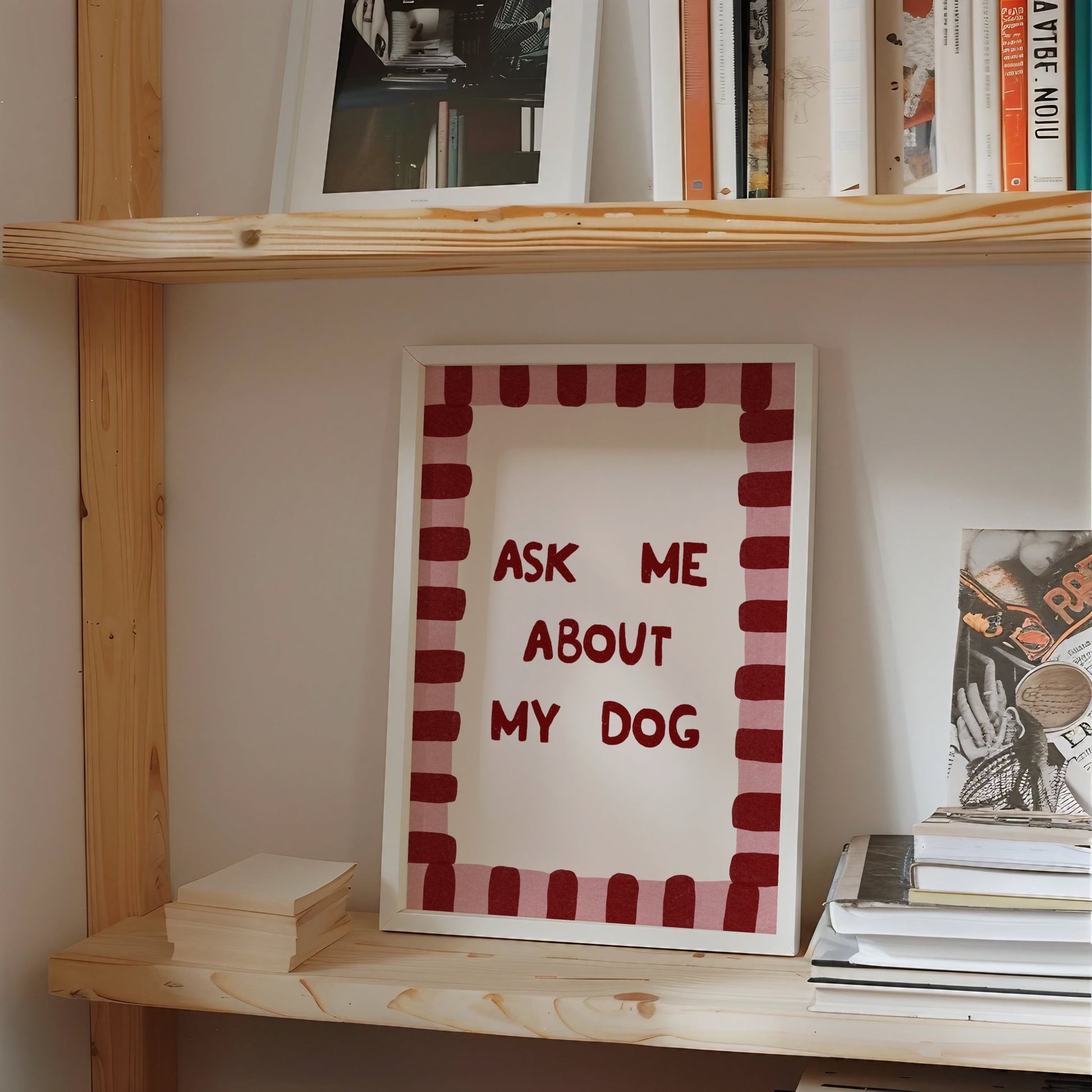 For dog lovers who proudly share their obsession! This vibrant ‘Ask Me About My Dog’ print comes in a bold red and pink or blue option, making it the perfect conversation starter. Whether you hang it in your living room or office, it’s sure to bring a pop of colour and a touch of personality to your space.