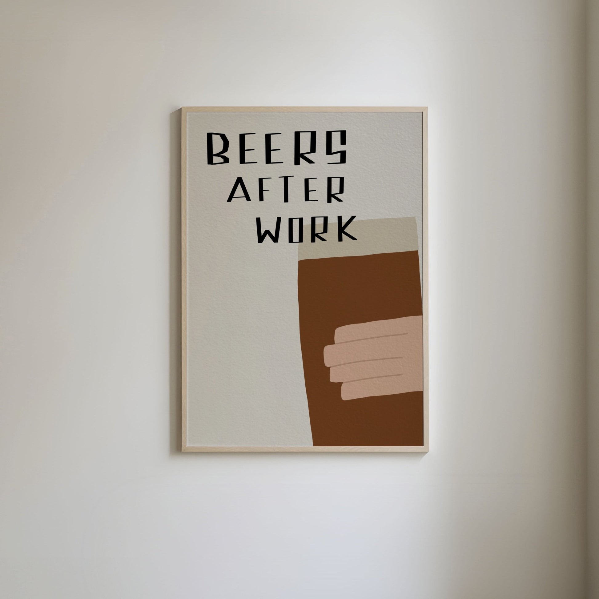 The workday is over—cheers to that! This playful wall art features a bold ‘Beers After Work’ design with a fun, minimalist beer illustration. Perfect for adding some personality to your kitchen, home bar, or office, this print is made for beer lovers who know that the best moments start after clocking out. A must-have for anyone who loves lighthearted, relatable decor!