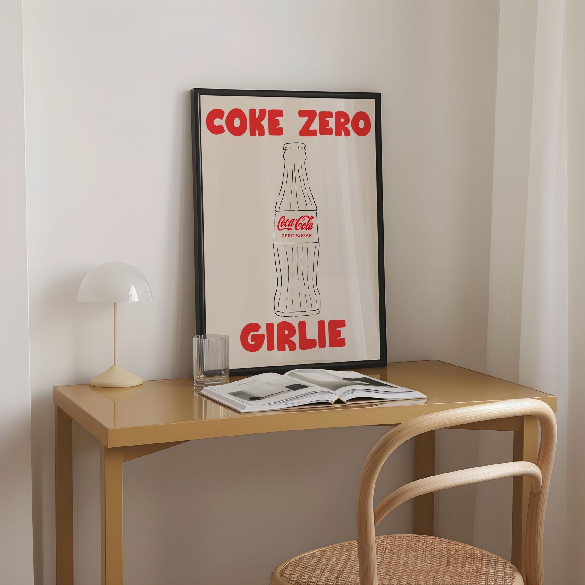 Bring a refreshing touch to your kitchen or dining room with this trendy Coca-Cola Zero hand-drawn illustration. A fun and stylish soda poster, perfect as wall art or a unique gift for a Coke Zero enthusiast!