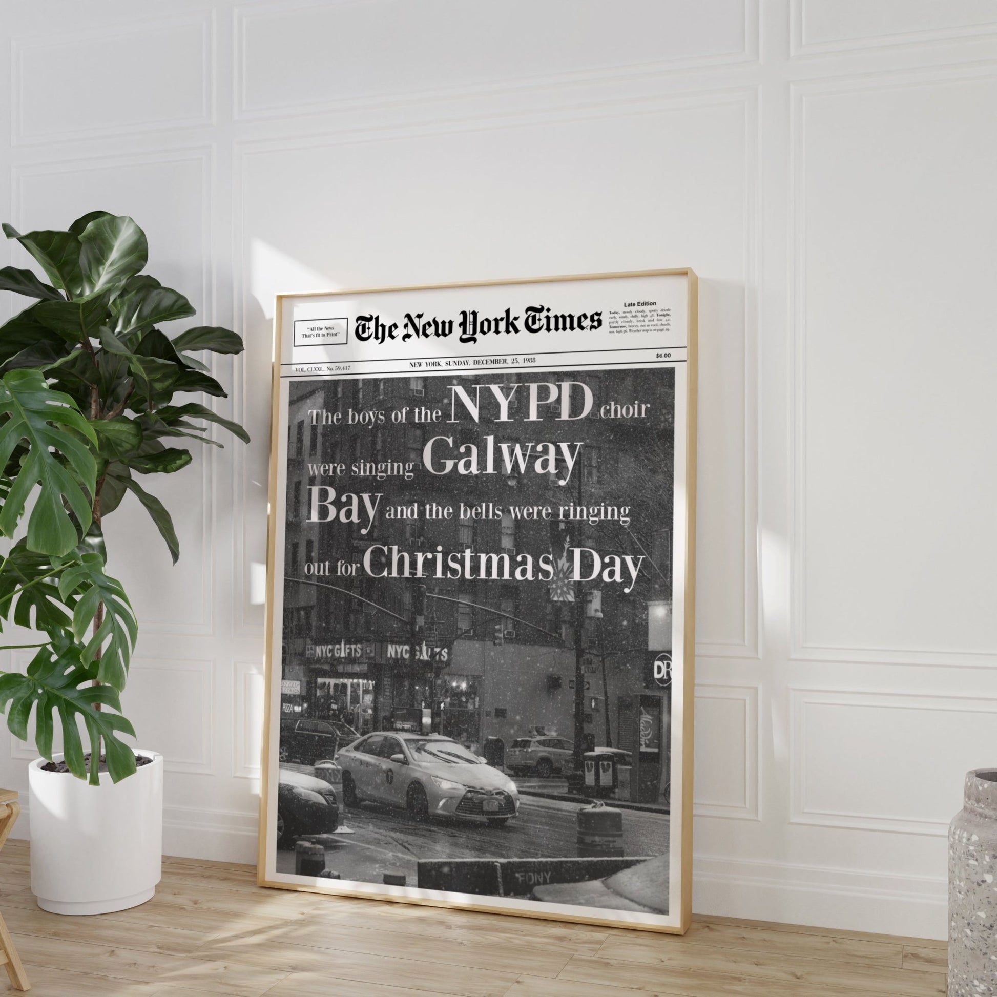 Celebrate the festive season with this 'Fairytale of New York' newspaper-style print, inspired by the classic Christmas song. A charming New York City-themed wall art, perfect for adding a touch of holiday magic to your home