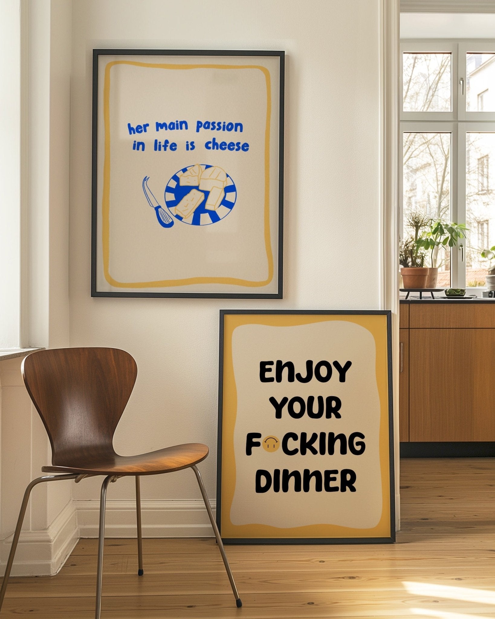 This funny kitchen poster is a must-have for any cheese lover. Featuring a hand-drawn illustration and a hilarious quote, it's the perfect addition to your modern home decor. A great gift for anyone who can't get enough of cheese!