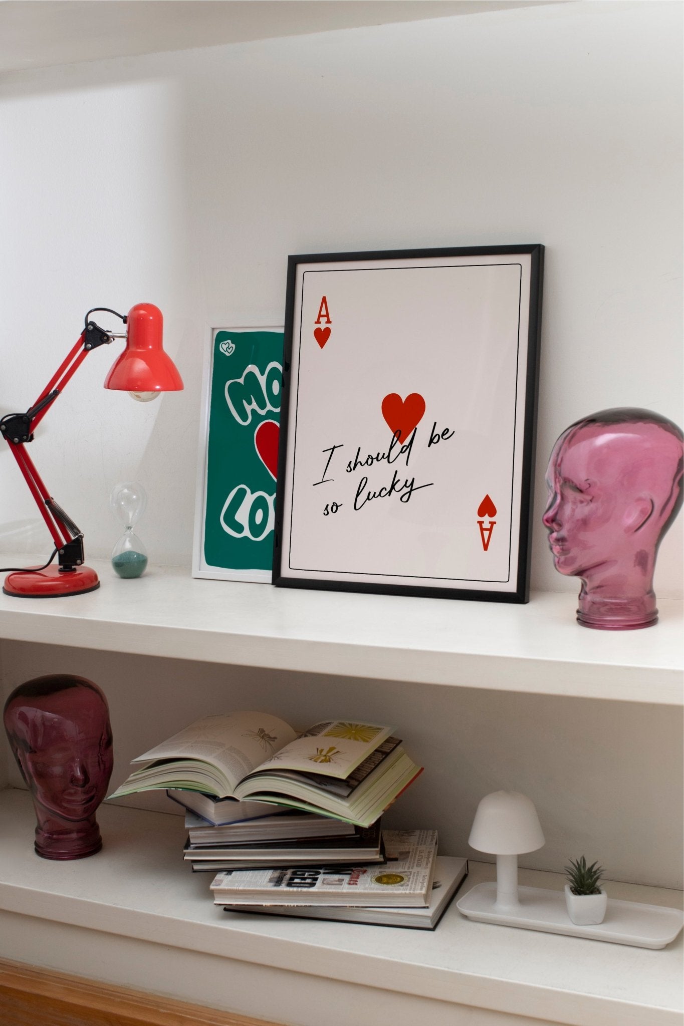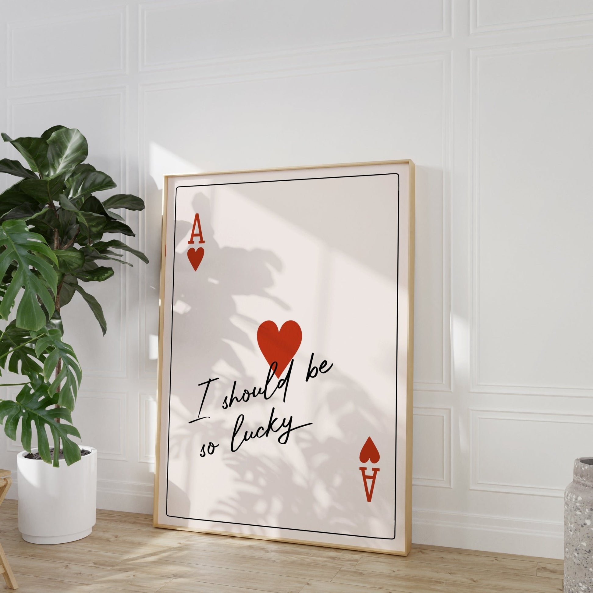 This 'I Should Be So Lucky' ace card print, featuring the iconic Ace of Hearts, adds a bold and playful statement to any room. With its modern design and quirky vibe, it's the perfect piece of wall art to bring personality and a touch of fun to your home decor.