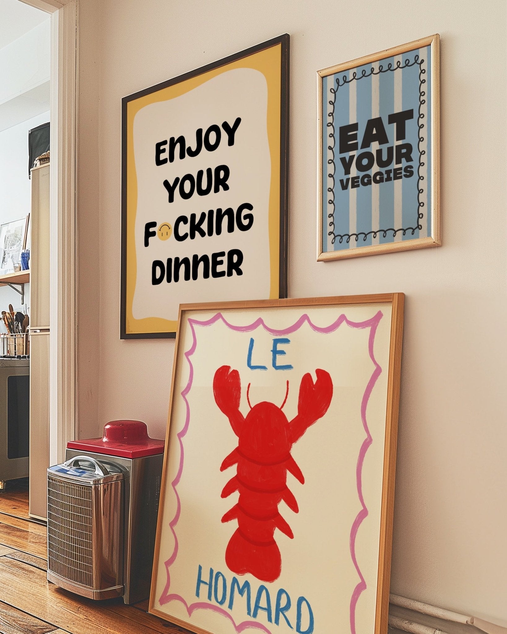 Add some flavour to your kitchen or dining room with our Le Homard Lobster Print. This hand-drawn, colourful French foodie poster features a deliciously bold lobster illustration. Perfect for seafood lovers and foodies alike!