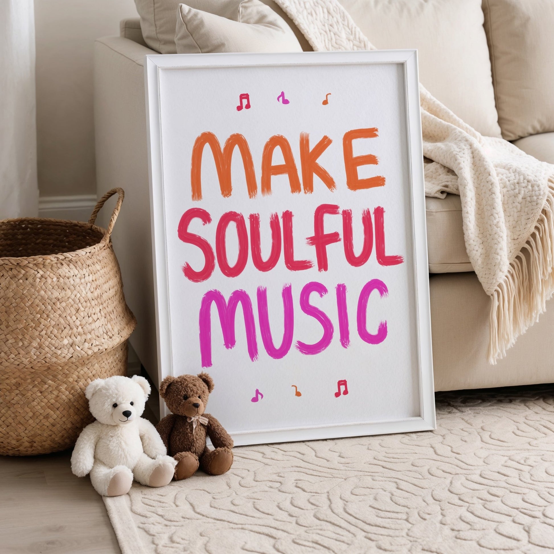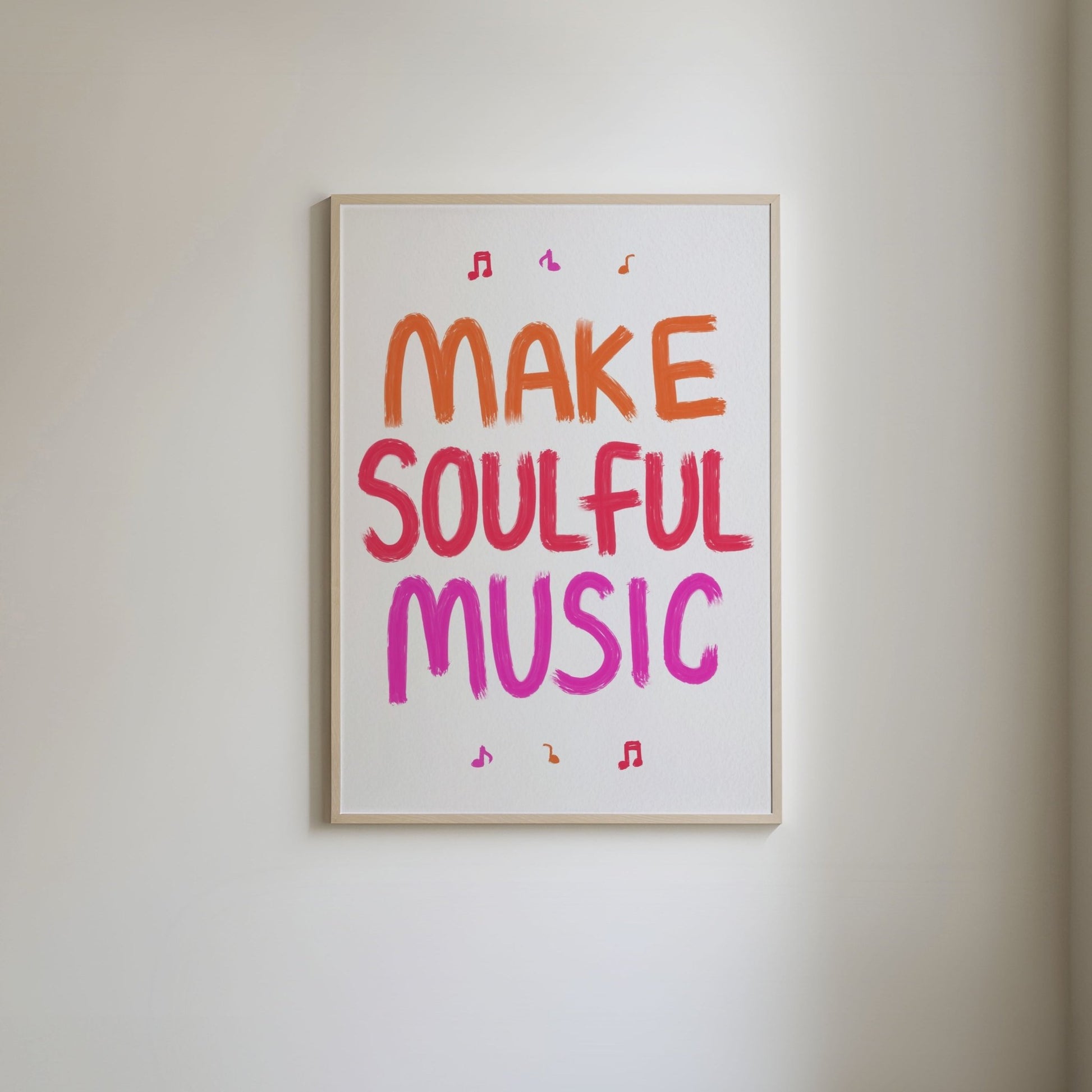 Inspire creativity and good vibes with this bold ‘Make Soulful Music’ print. Available in vibrant blue and green, pink and orange, or a playful multi-colour mix (green, pink, purple), this piece brings energy and personality to any room. Perfect for music lovers, home studios, living rooms, or creative workspaces. Add a pop of colour to your office wall decor, artistic home decor, or music room—a great reminder to live creatively!