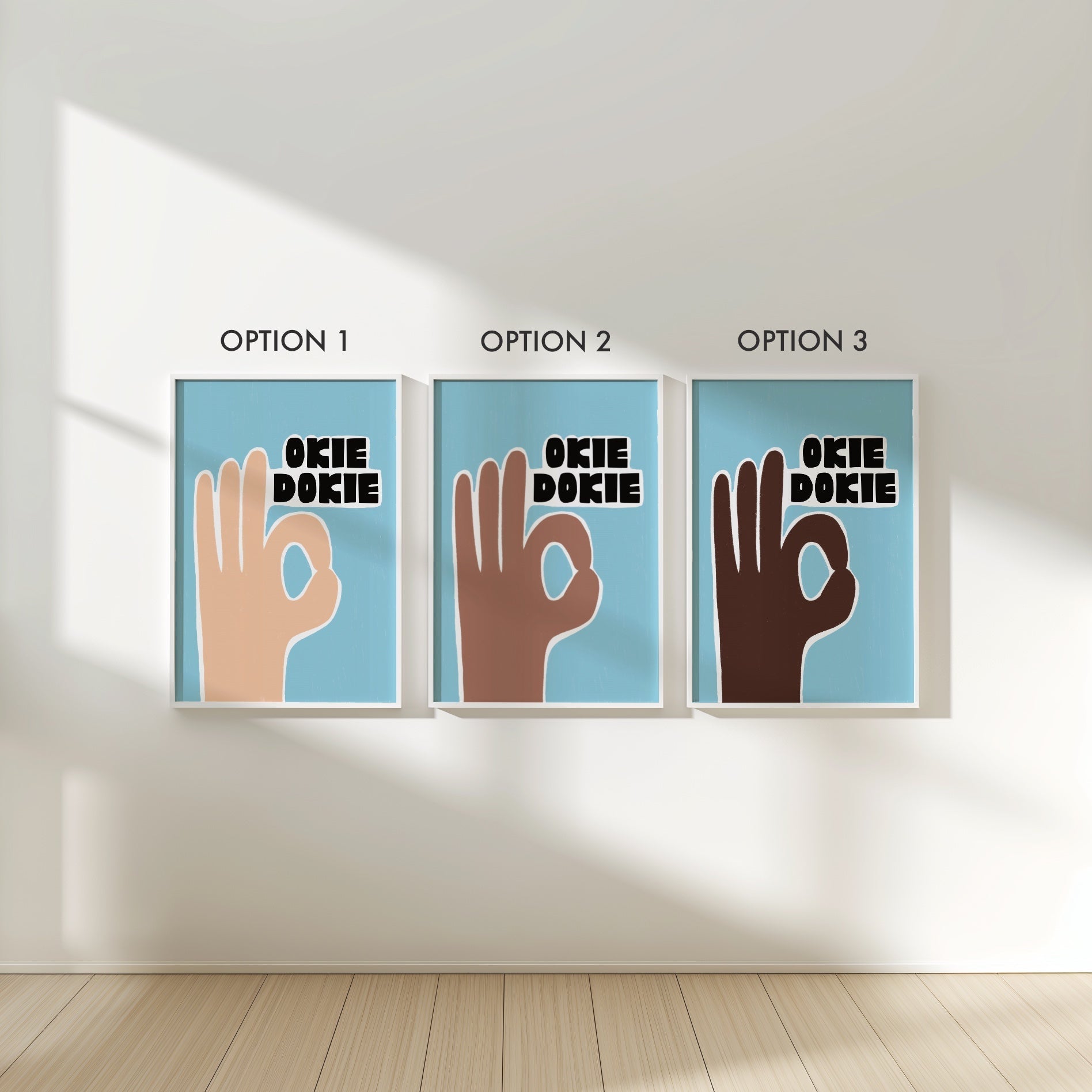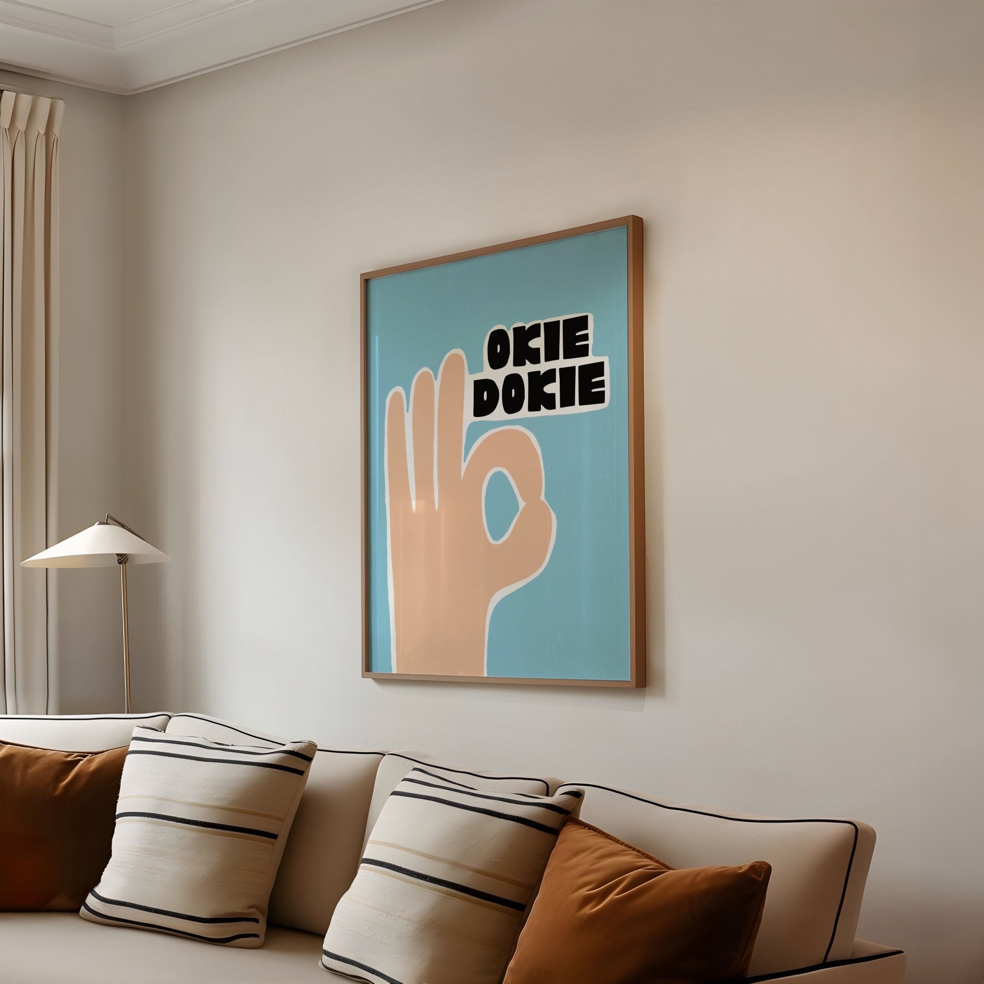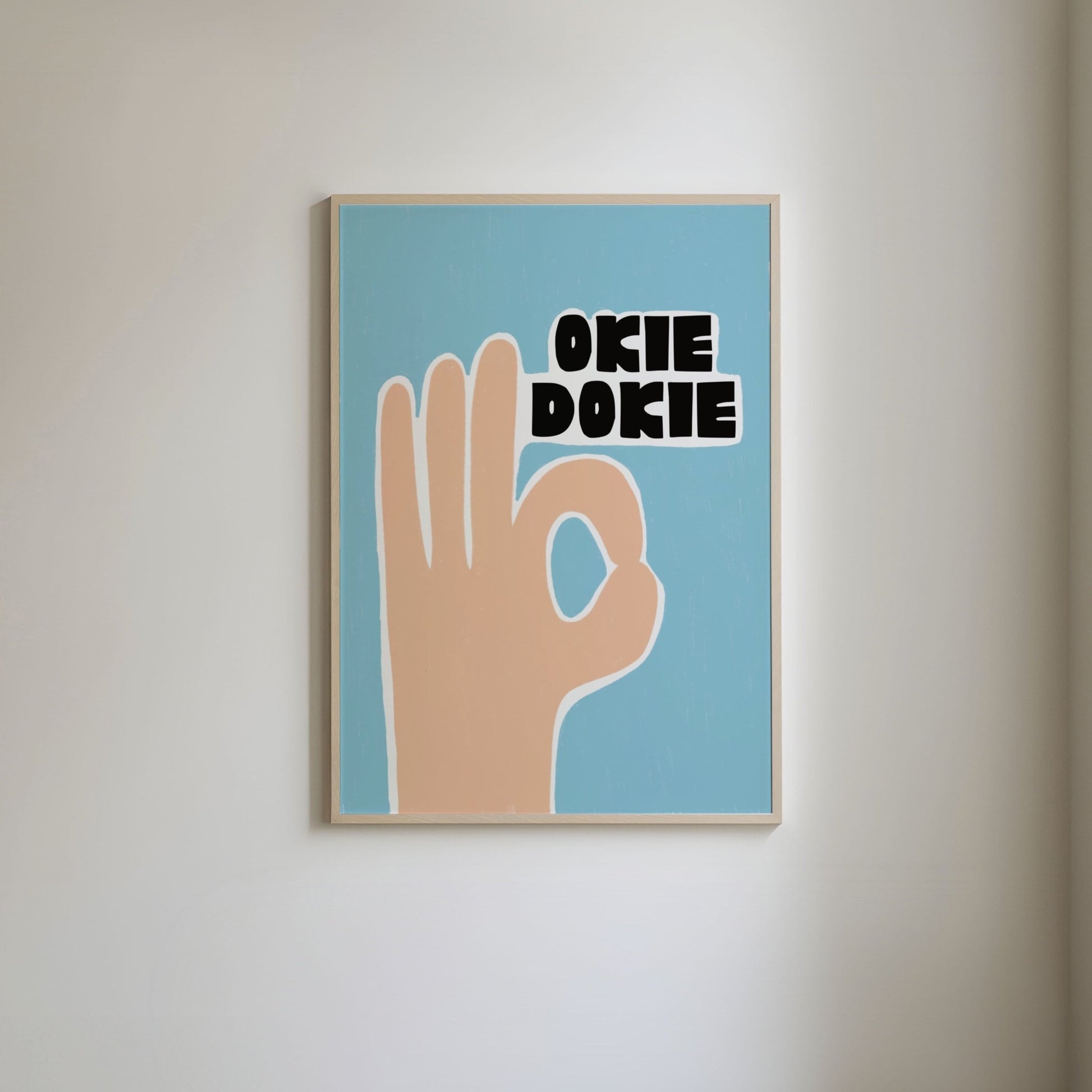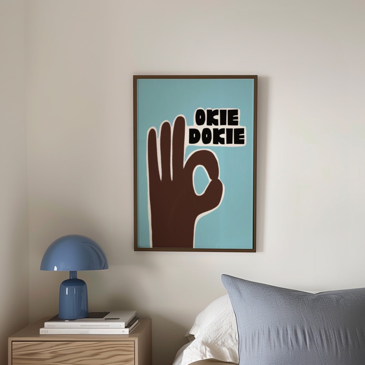 Keep it light and let the good vibes roll with this bold and quirky print, bringing instant chill energy to any space. Featuring a hand-drawn “ok” gesture and the words Okie Dokie, it's the perfect way to keep things light, fun, and a little offbeat. Whether you're dressing up your home office, your kitchen, or a cool living room space, this print adds a dose of casual charm and cheerful reassurance. Because sometimes, “okie dokie” is the mood.