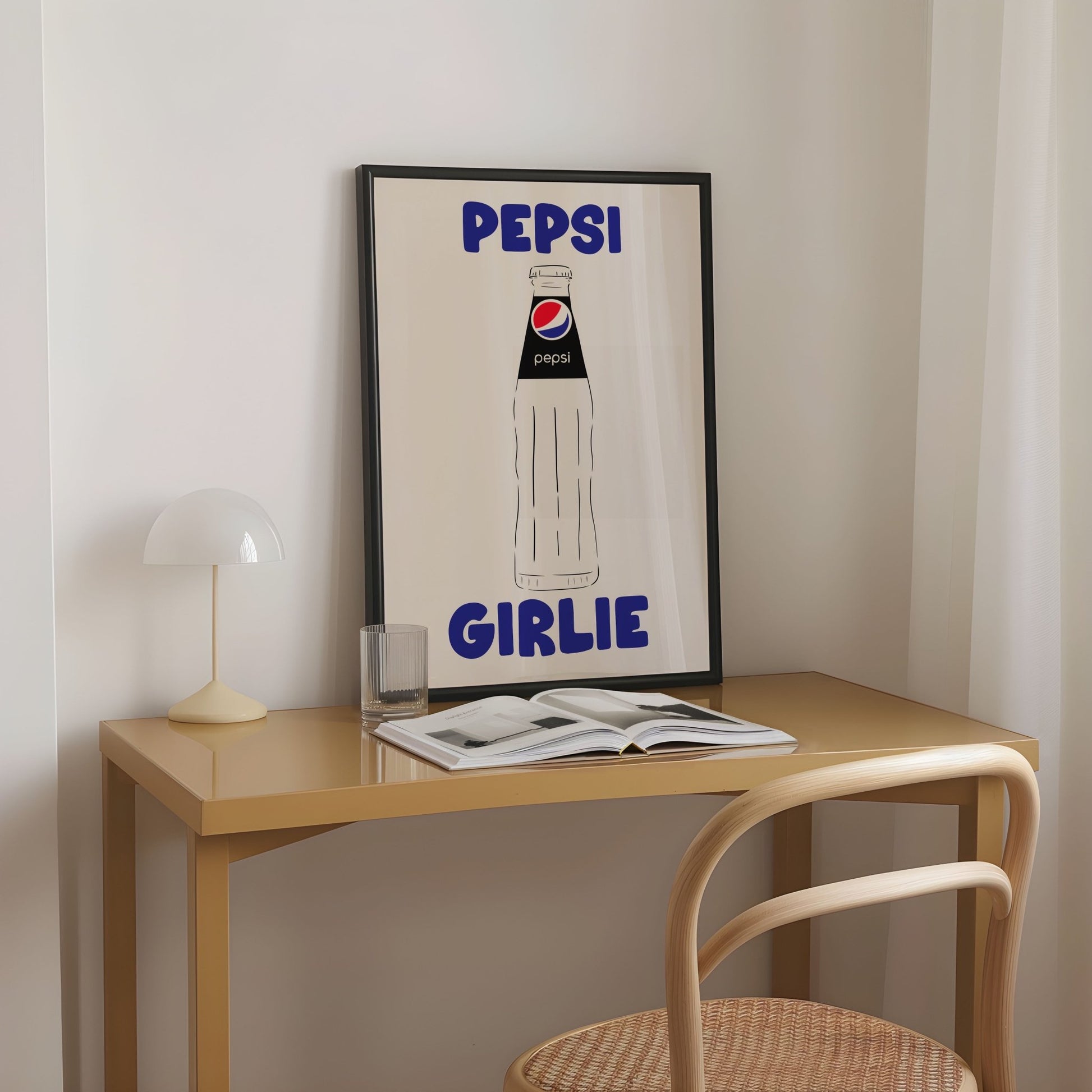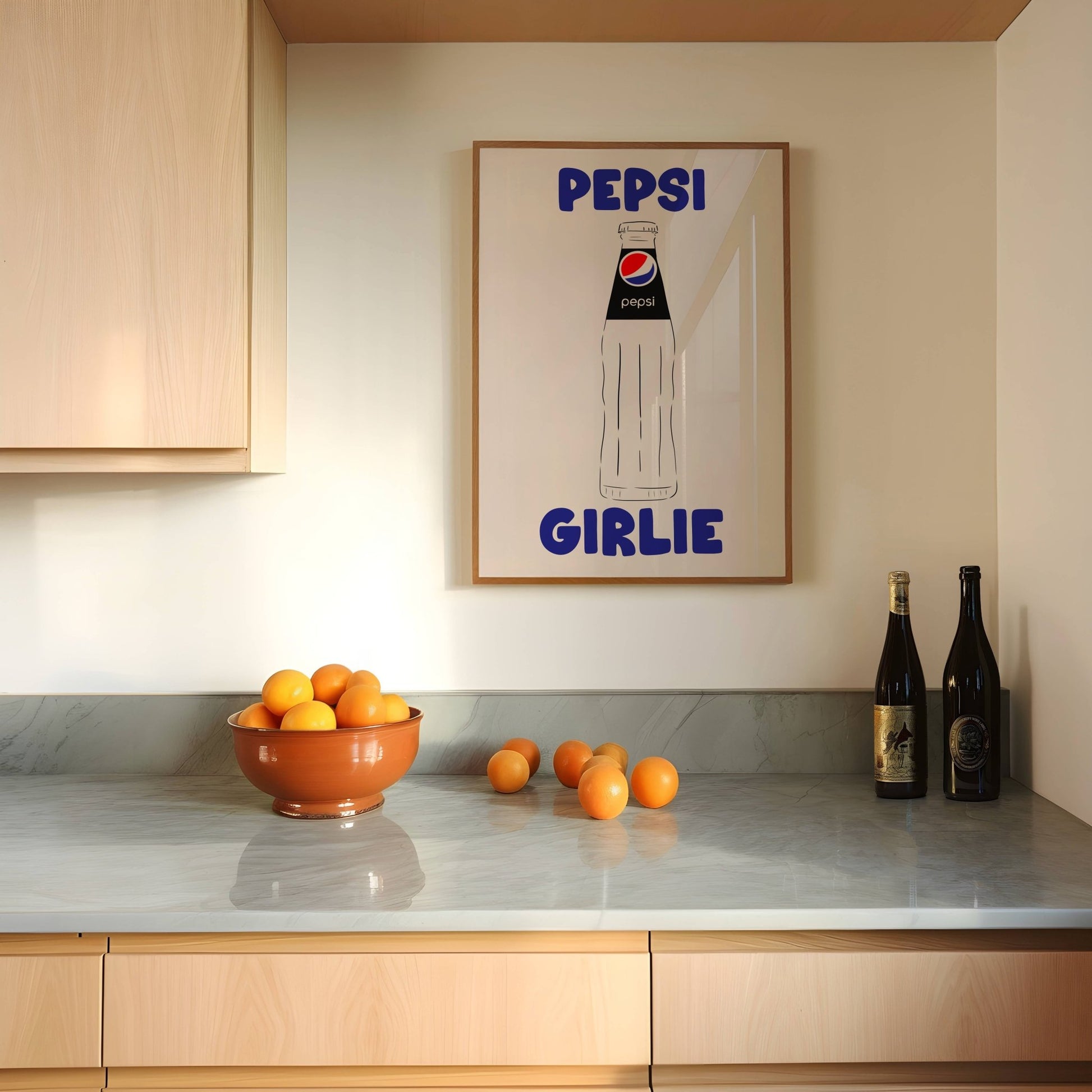 Celebrate your love for Pepsi with this retro-inspired, bold blue print, designed to bring a splash of nostalgia to any kitchen or dining room. Perfect for Pepsi enthusiasts, this drink illustration makes a fun and unique gift idea, adding character and style to any wall with its vintage charm and vibrant colours!