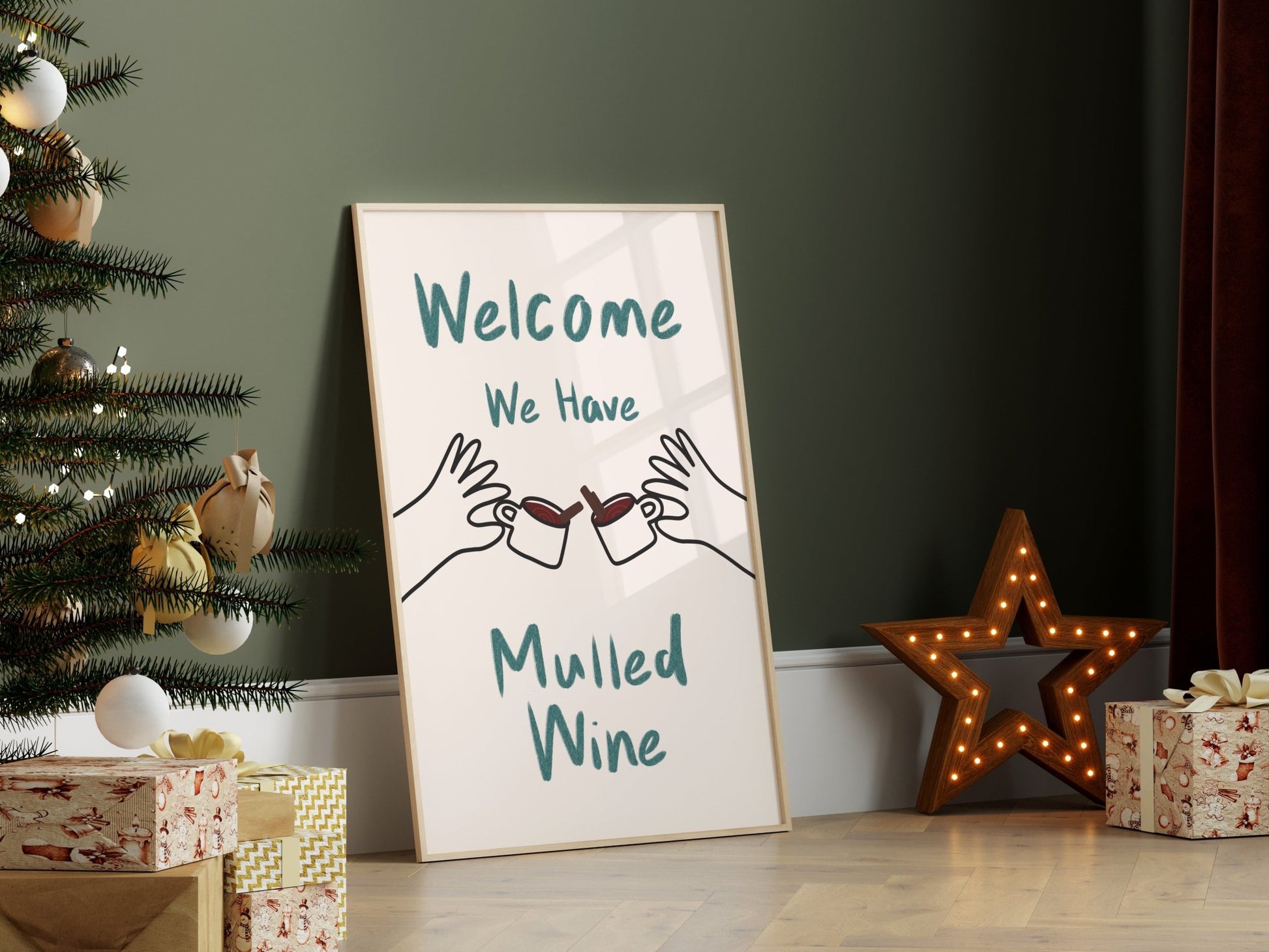 Welcome guests into your home with our festive "Welcome We Have Mulled Wine" print. Featuring a hand-drawn illustration, this Christmas poster will add a touch of coziness to any kitchen or hallway decor. The perfect addition to your holiday celebrations.